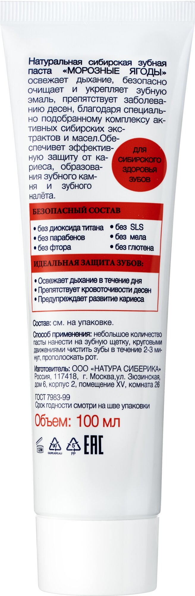 Ниже Вы можете прочитать отзывы на Паста зубная "Морозные ягоды" Natura Siberica 100 г, ознакомится с подробными характеристиками, посмотреть интересные обзоры и фотографии на Паста зубная "Морозные ягоды" Natura Siberica 100 г.