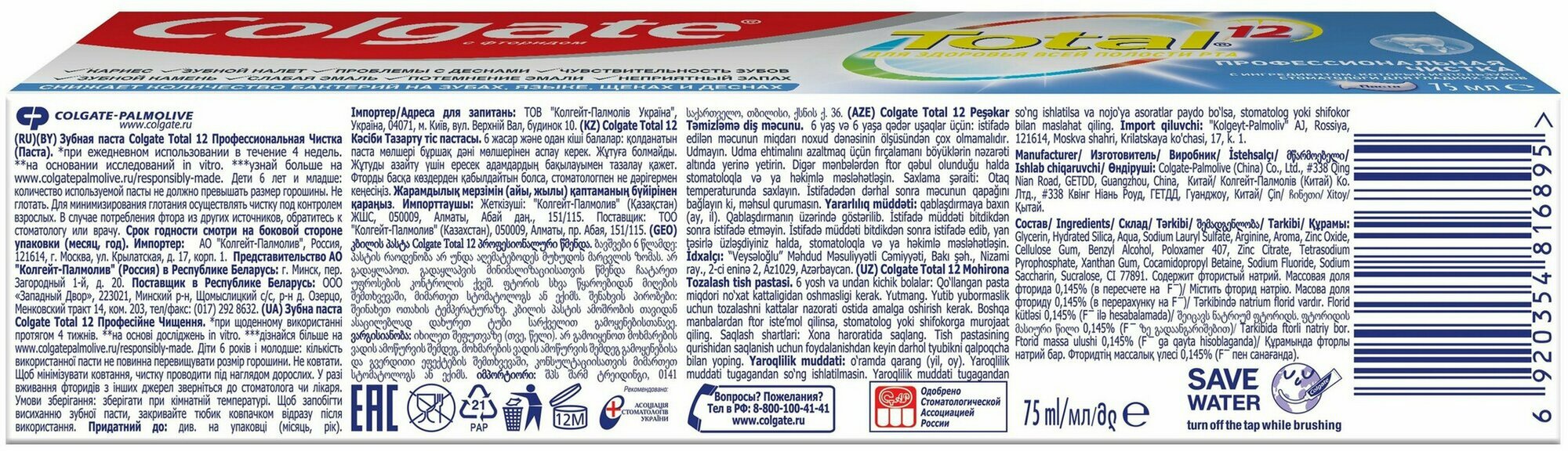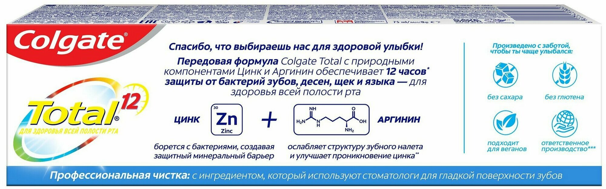 Колгейт / Colgate Total 12 - Зубная паста профессиональная чистка, 75 мл