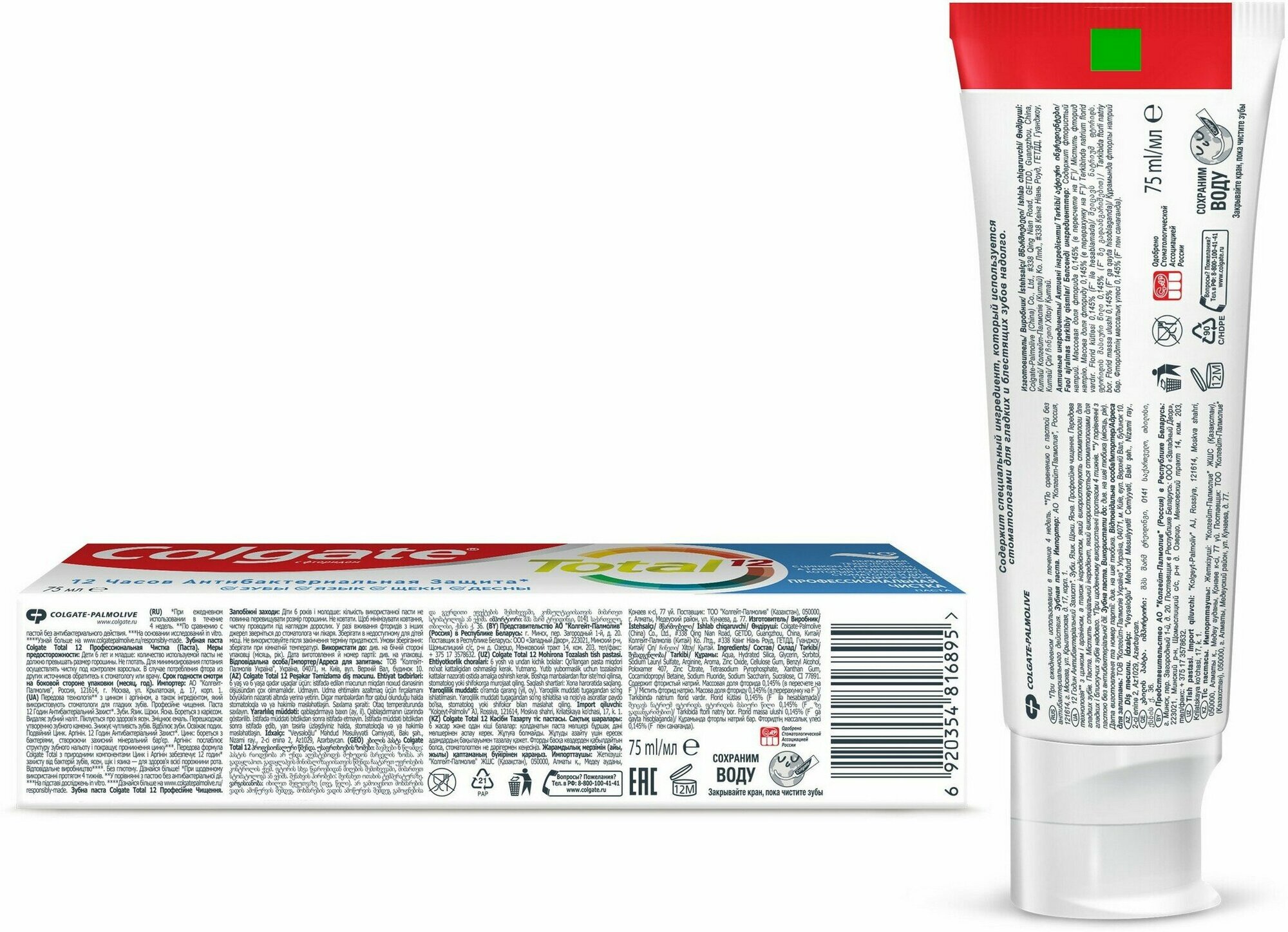 Зубная паста Colgate "Total 12 Профессиональная чистка", комплексная, антибактериальная, 75 мл