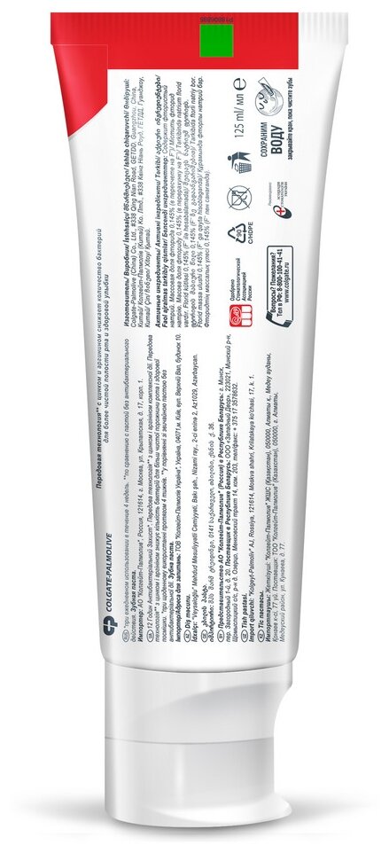 2. У моей пасты рисунок на тюбике слегка отличается от рисунка на фото на странице. Но тоже Colgate, Total 12, Cleant mint. Поэтому комментарий оставил здесь. Фото прилагаю. 3. Тюбик пасты на 2 см короче тюбиков паст Colgate "Тройное действие" и Colgate "Максимальная защита от кариеса". 4. Паста нравится, рекомендую для покупки. |