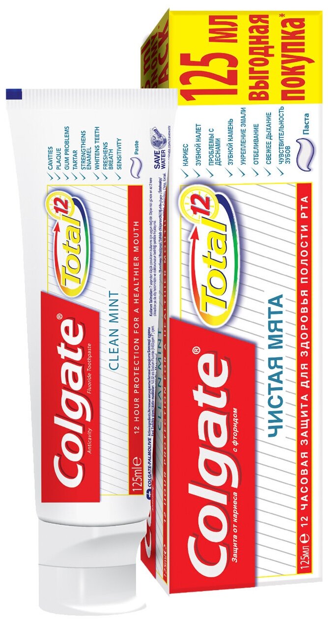 Ниже Вы можете прочитать отзывы на Colgate Total 12 Чистая Мята комплексная антибактериальная зубная паста, 125 мл, ознакомится с подробными характеристиками, посмотреть интересные обзоры и фотографии на Colgate Total 12 Чистая Мята комплексная антибактериальная зубная паста, 125 мл.