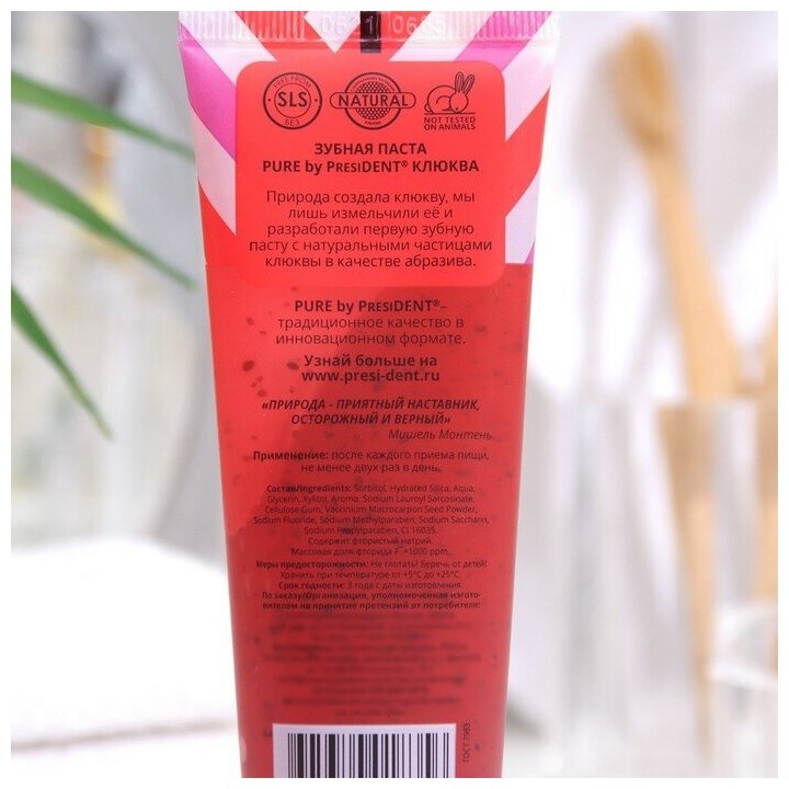 PRESIDENT Зубная паста Pure by President клюква, 100 г