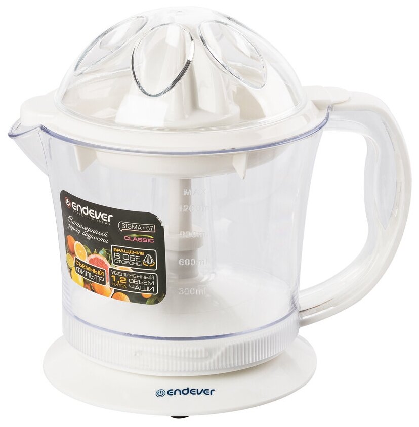 Купить Соковыжималка Endever Sigma-67 White для цитрусовых, 40Вт, стакан 1.20л