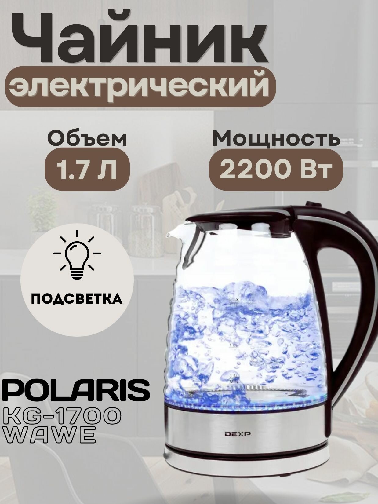 Чайник электрический Dexp KG-1700 Wave 1.7 л, 2200 Вт, коричневый интересное:
