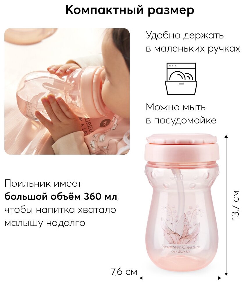 Сохранить14011, Поильник детский с трубочкой Happy Baby, поильник непроливайка детский 360 мл, розовый интересное: