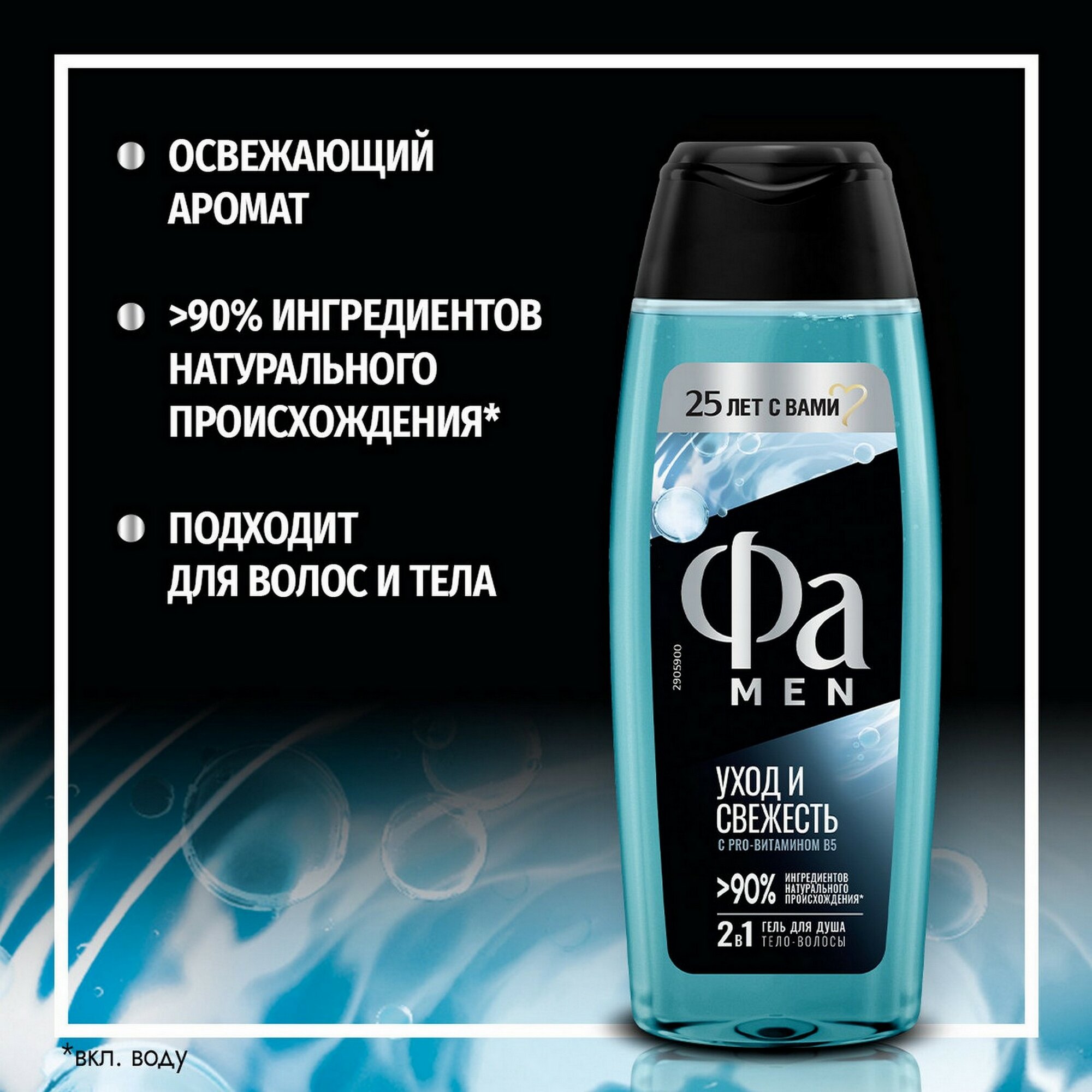 Фа / Fa Men - Гель для душа 3в1 для тела, лица и волос Уход и свежесть 250 мл