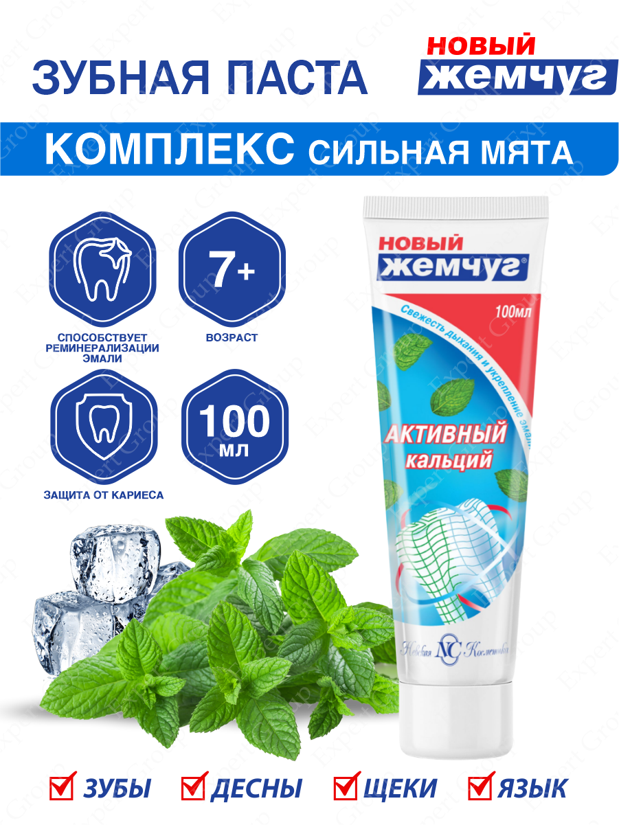 Зубная паста Новый Жемчуг, комплексная защита от кариеса, с сильным ароматом мяты, 100мл (17123)