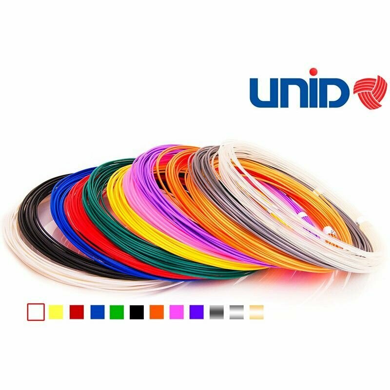 Пластик UNID PLA-12, для 3Д ручки, 12 цветов в наборе, по 10 метров Unid 1396090 .