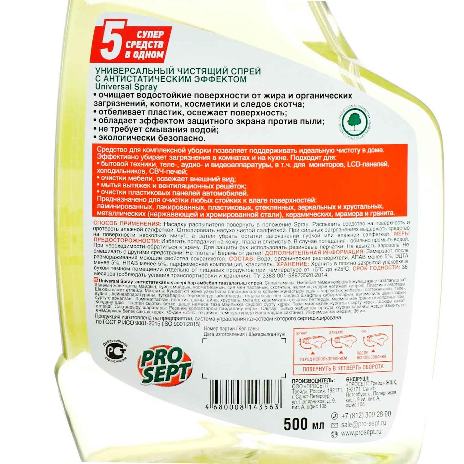 Универсальное моющее и чистящее средство Universal Spray, готовое к применению, 5 л PROSEPT 1284631 .