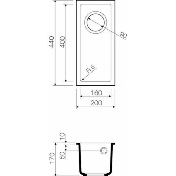 Кухонная мойка OMOIKIRI Bosen 20-U-BL 20х44см искусственный гранит/черный