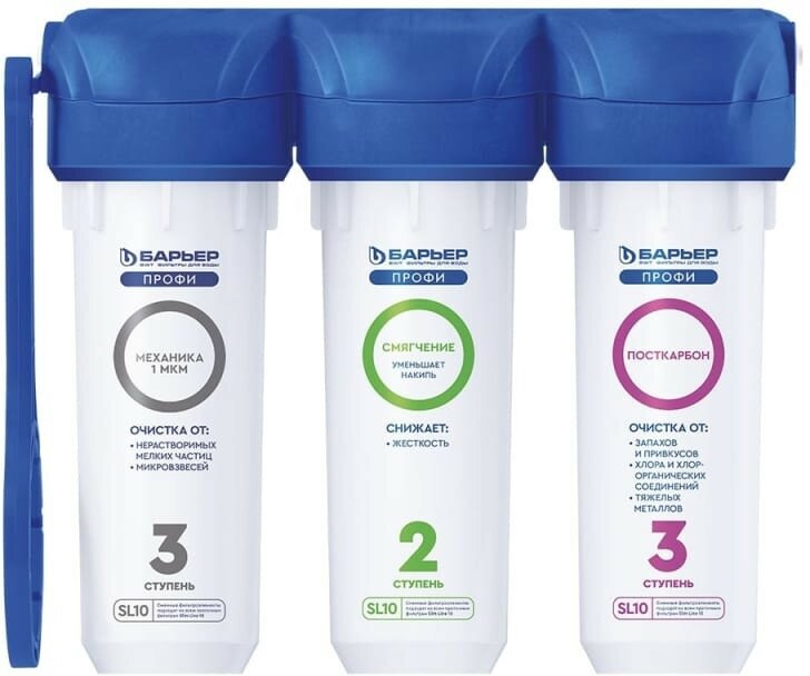 Фильтр для воды Барьер Профи Жесткость трехступенчатый проточный с краном 5 мкм 10SL