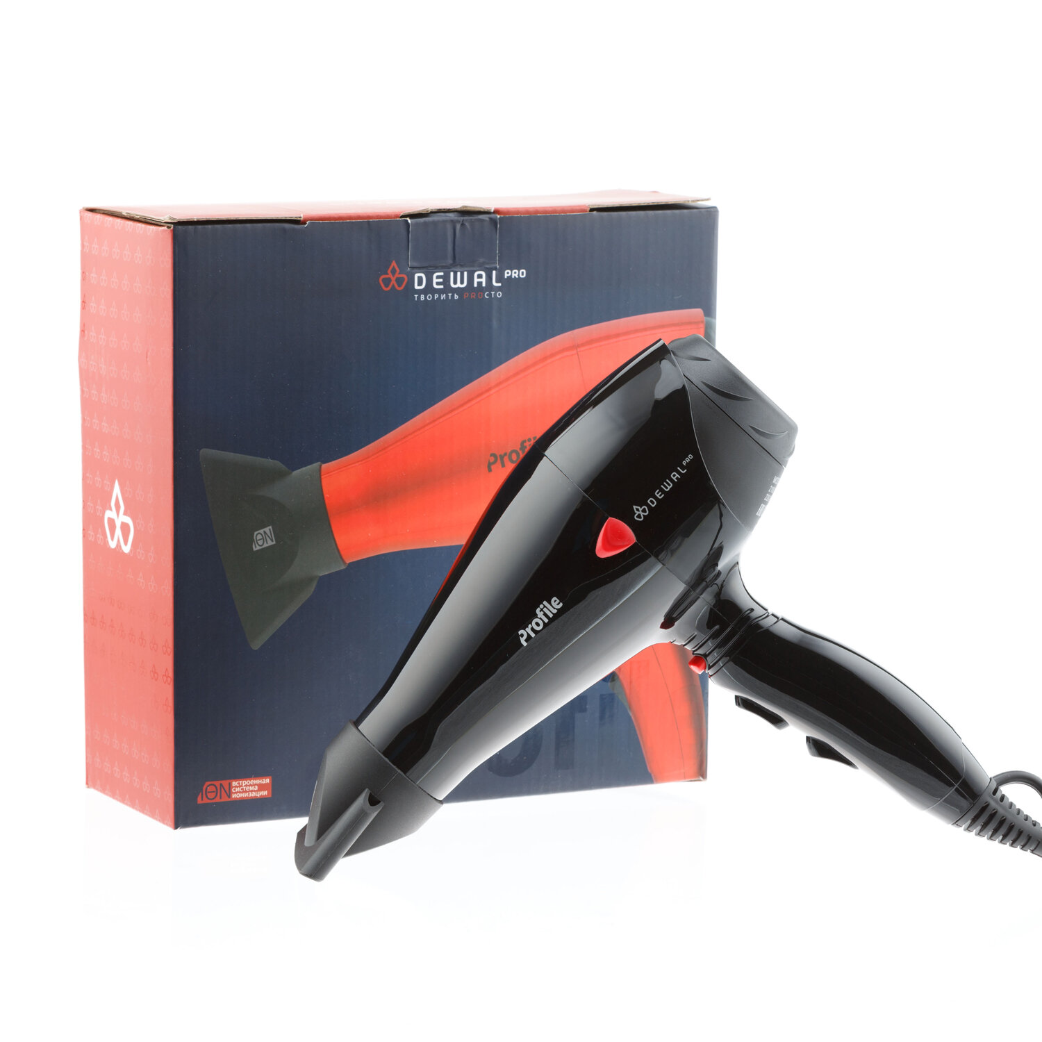 DEWAL PROFESSIONAL Фен Profile 2200 черный, ионизация, 2 насадки, 2200 Вт