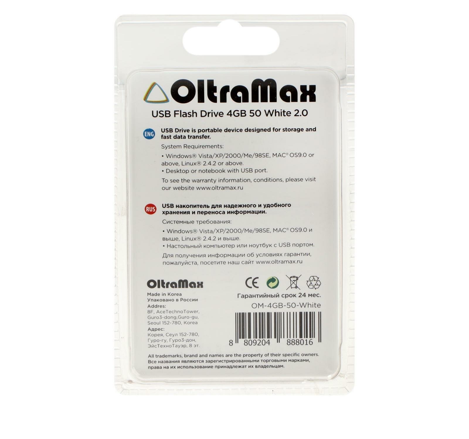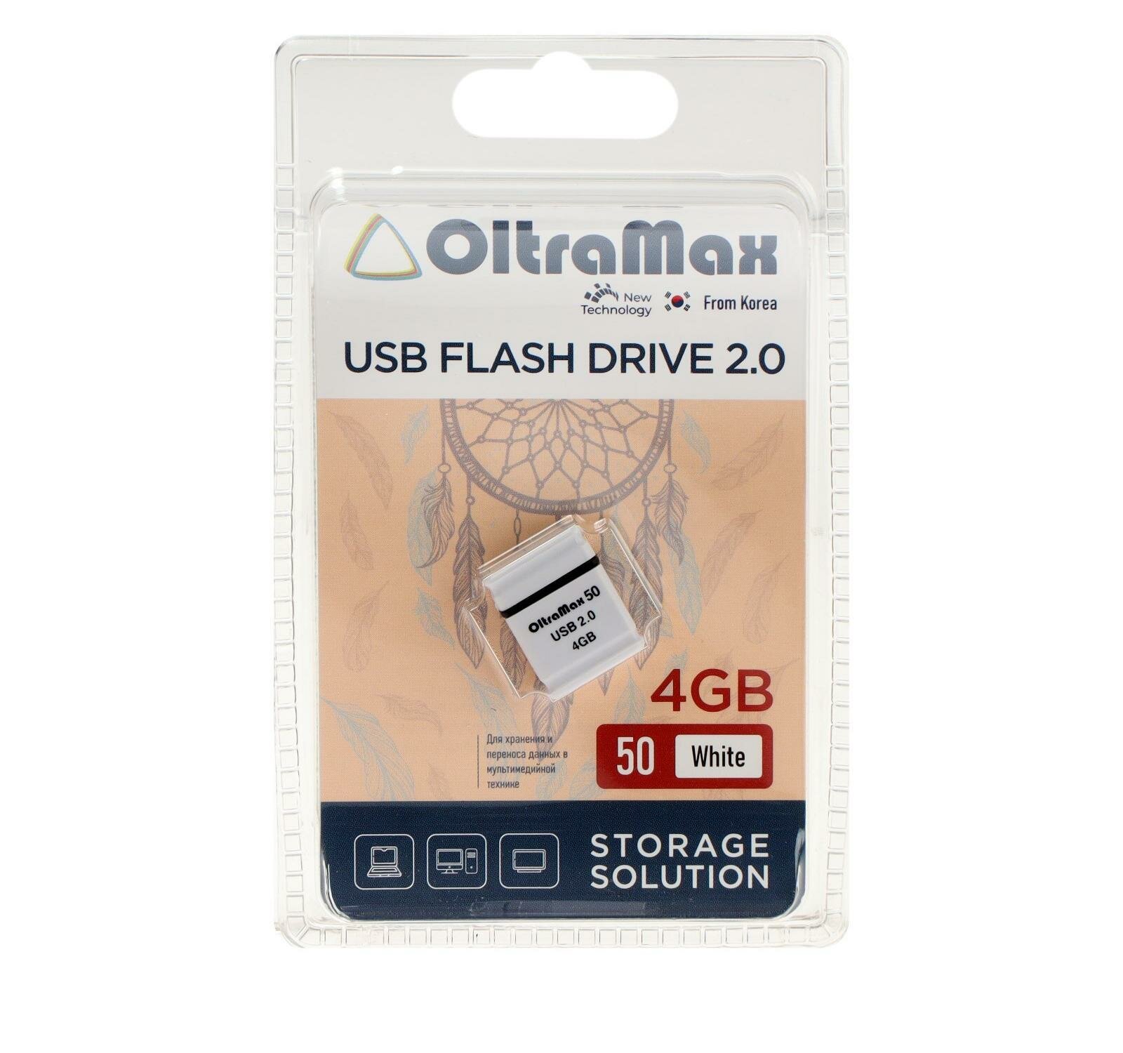Флэш-накопитель OLTRAMAX 4GB 50, USB 2.0, белый