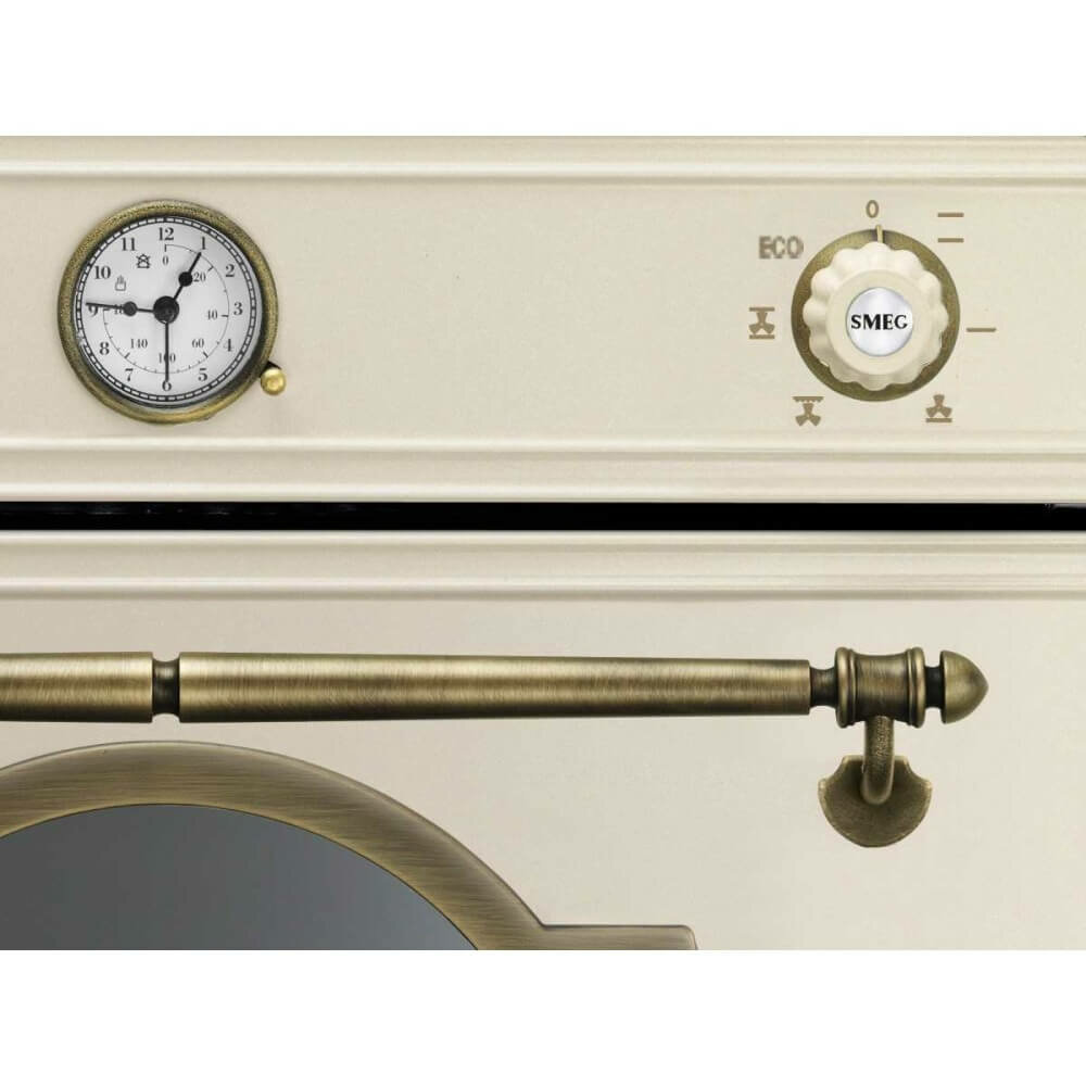 Встраиваемая электрическая духовка SMEG/ Cortina, многофункциональный духовой шкаф, 60 см, кремовый, фурнитура латунная