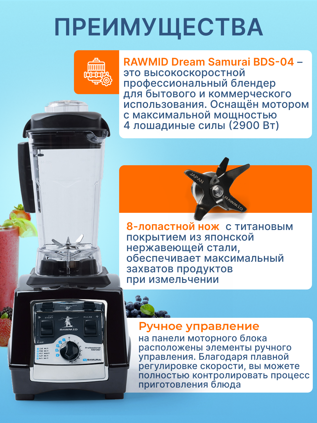 Профессиональный блендер RawMid Dream Samurai 4HP (BDS-04), синий