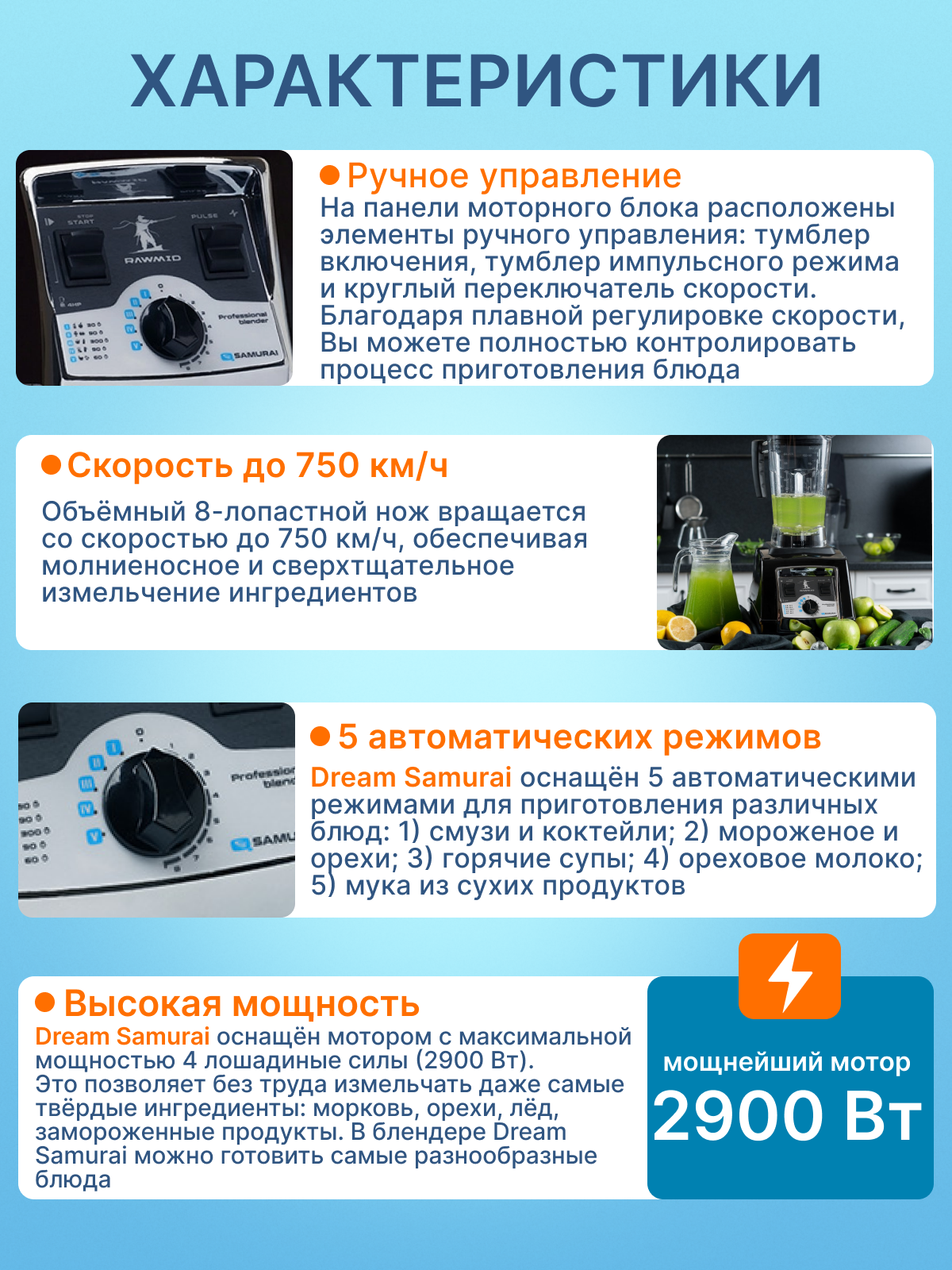 Профессиональный блендер RawMid Dream Samurai 4HP (BDS-04), синий
