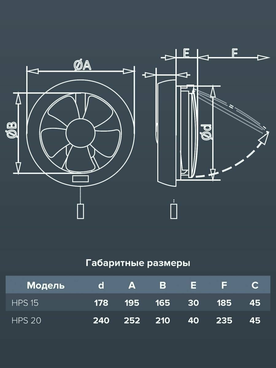 Вентилятор вытяжной ERA HPS 15, 195x195 мм, d=178 мм, 220‒240 В, оконный