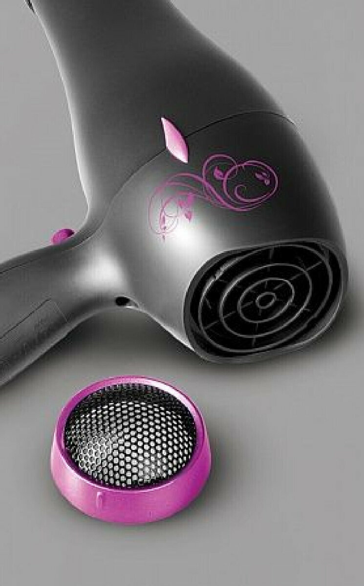 Мощный фен на 2000 ватт, при этом, выполнен в классическом черном цвете с лиловыми элементами. Оснащение неплохое - имеет две скорости и три температурных режима, что позволяет подобрать подходящее сочетание температуры и скорости для любых волос, в том числе, поврежденных и тонких. Рукоять фена эргономичная и удобная, переключатели расположены с внутренней стороны, что позволяет легко изменять настройки прямо во время использования. Волосы после использования фена выглядят здоровыми и гладкими, а не сухими и пушистыми, как это бывает после использования некоторых других фенов. Поэтому, своим выбором я осталась довольна.