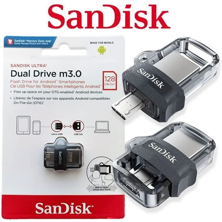 Флеш-накопитель Sandisk 128 ГБ Ultra Dual Drive m3.0 USB 3.0 micro-USB (SDDD3-128G-G46)