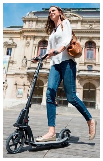 Блокировка переднего тормоза оказалась крайне удобной- на светофоре, в метро и при парковке в обычном, и сложенном состоянии. ДВА тормоза- передний и задний. Отличная отзывчивость на отталкивание по сравнению с амортизированными моделями . Маневренный, короткая колесная база. Складывается моментально. Центр тяжести смещен вперед, соответственно прыгать\переносить через поребрики на скорости его гораздо легче. Велосипедный руль с отличными грипсами позволяет контролировать мельчайшие доли угла поворота. |