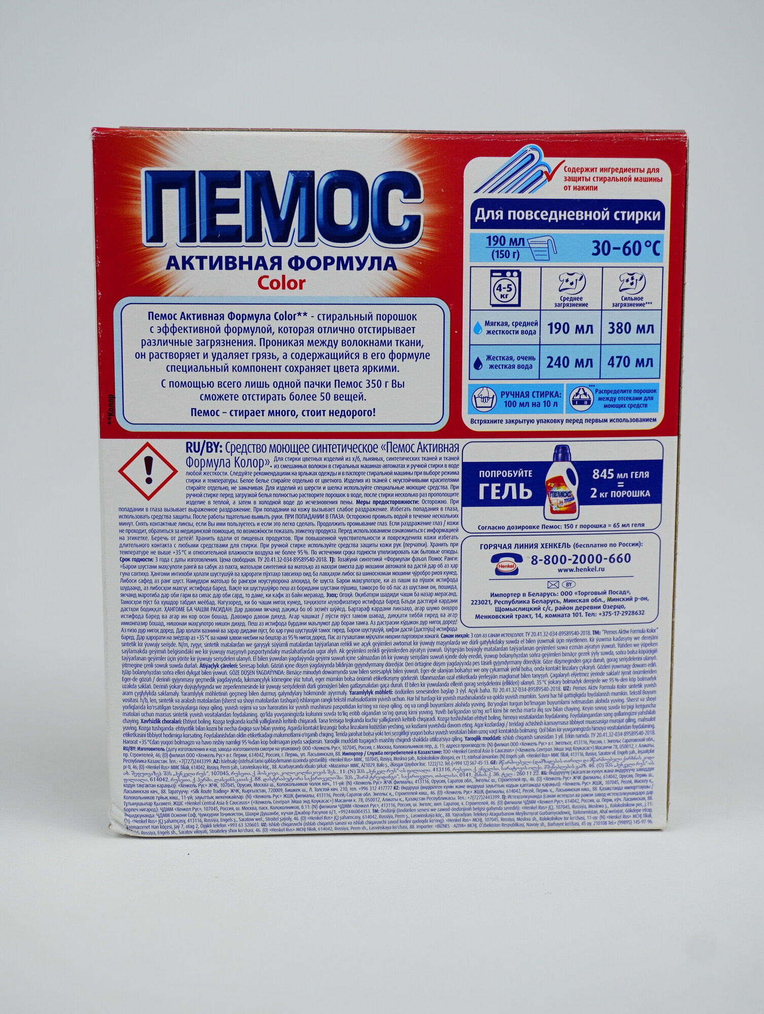 Ниже Вы можете прочитать отзывы на Порошок стиральный пемос Активная формула Колор 350 г, ознакомится с подробными характеристиками, посмотреть интересные обзоры и фотографии на Порошок стиральный пемос Активная формула Колор 350 г.