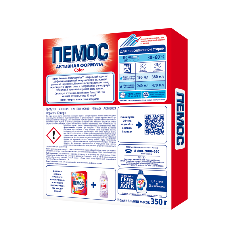 Купить Порошок стиральный пемос Активная формула Колор 350 г