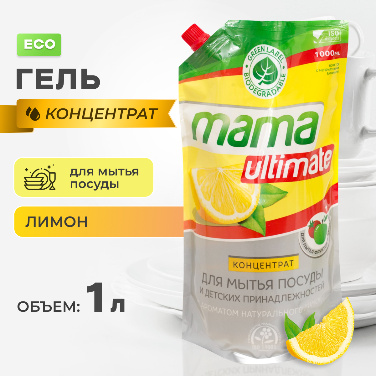 Купить Средство-концентрат для мытья посуды, фруктов, овощей и детских принадлежностей Mama Ultimate, лимон, 1 л