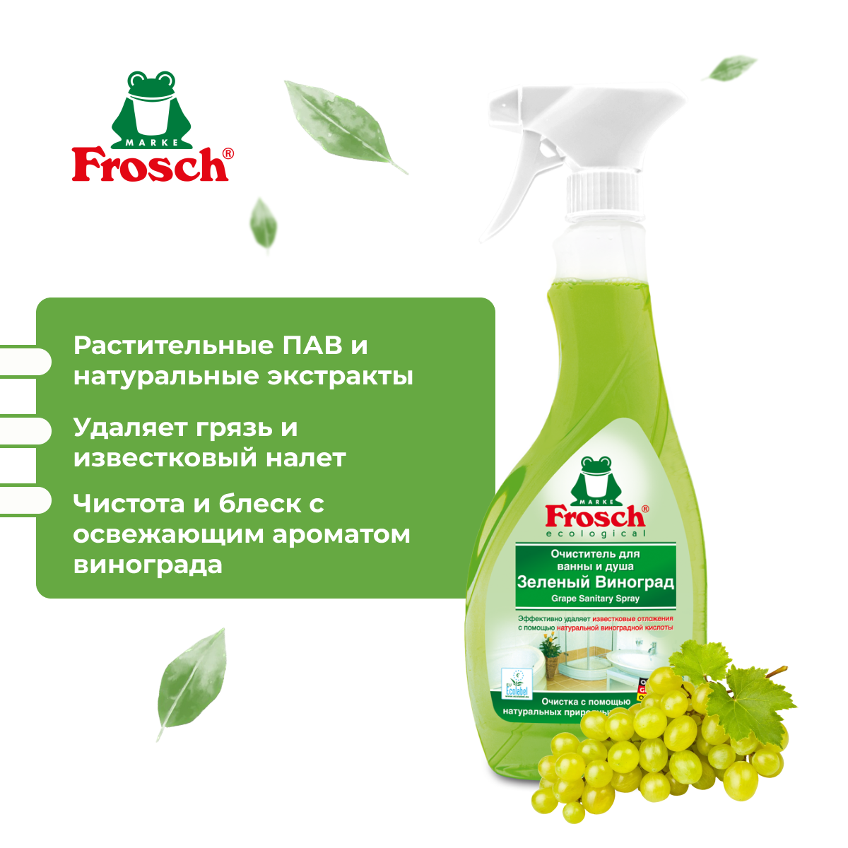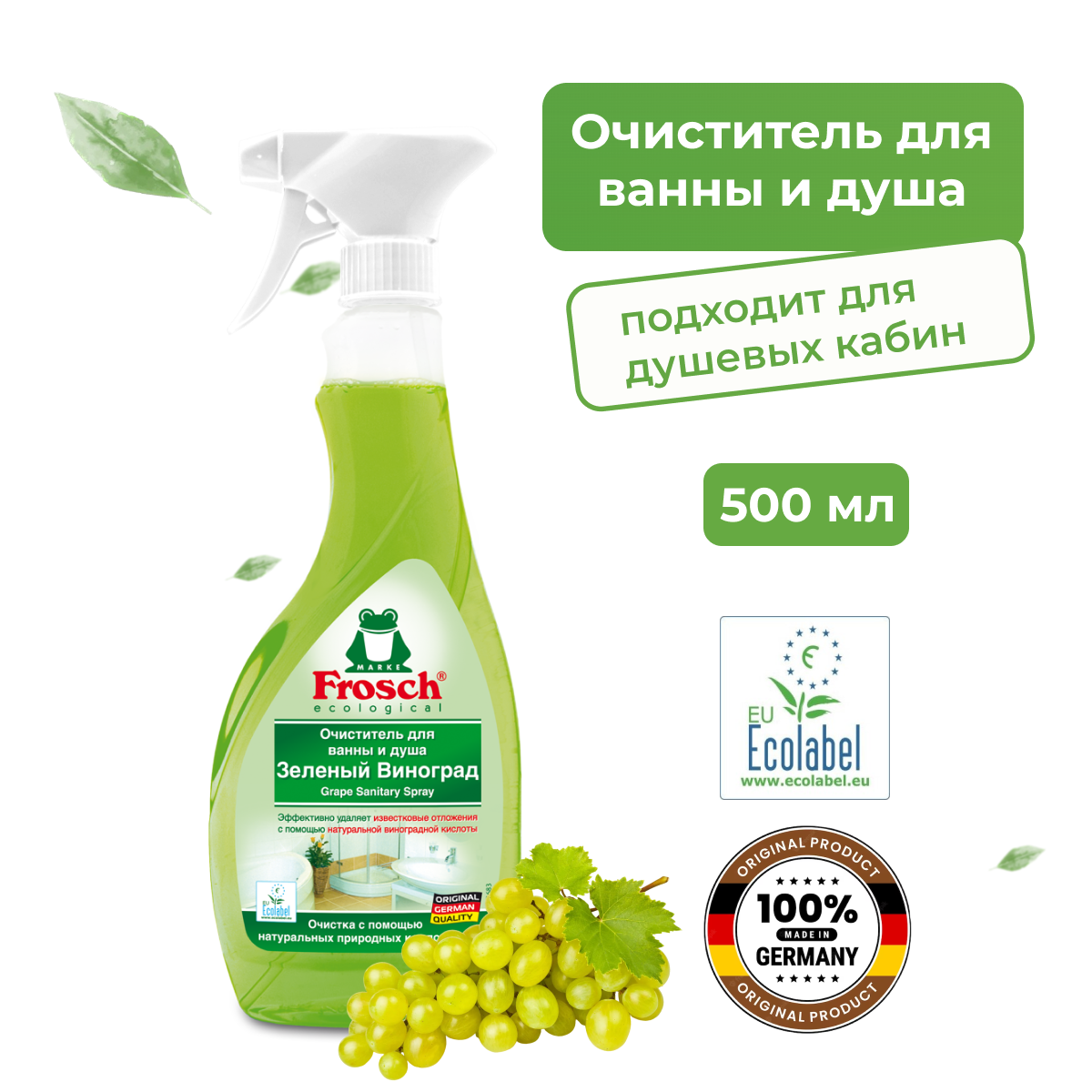 Frosch Очиститель для ванны и душа (зеленый виноград), 0,5 л