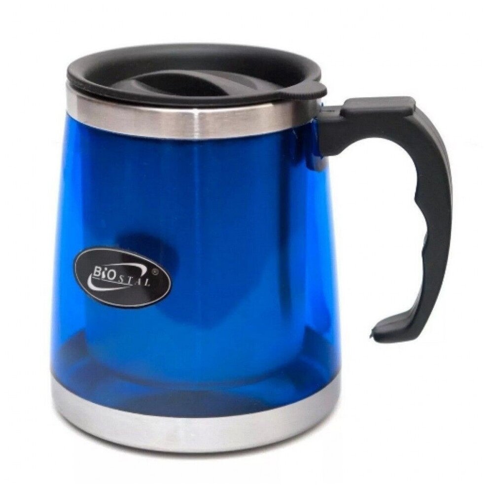 Кружка дутая Biostal (0,42 литра) с крышкой, синяя