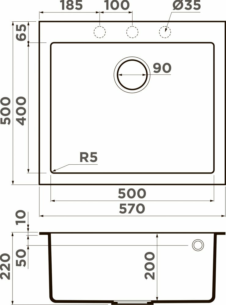 | Ширина мойки | 57 см |