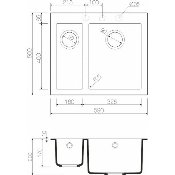 | Ширина мойки | 59 см |