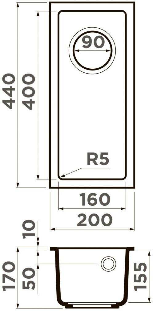 Кухонная мойка OMOIKIRI Bosen 20-U-BL 20х44см искусственный гранит/черный