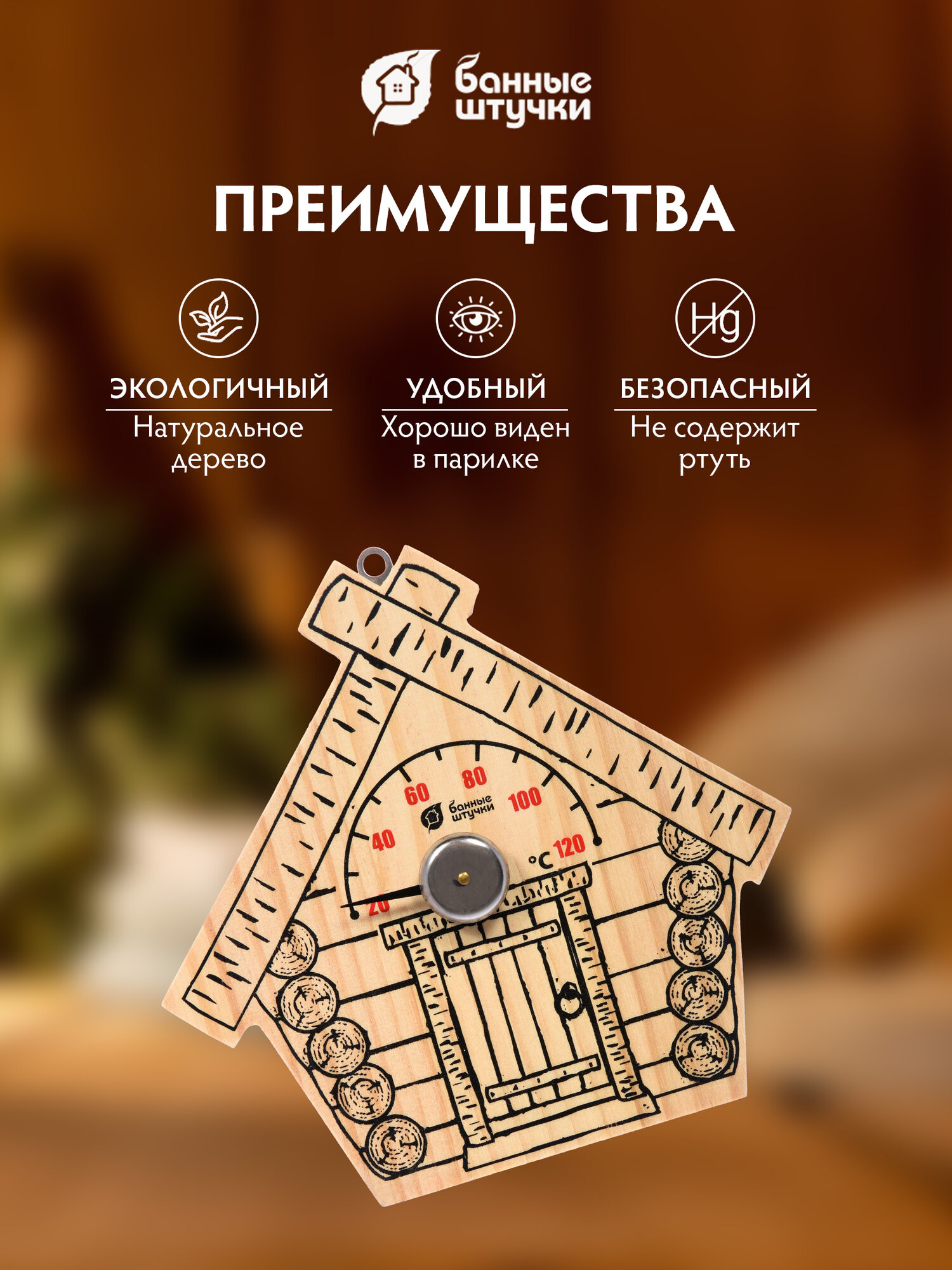 Термометр "Парилочка" 17х16х2,5 см для бани и сауны "Банные штучки" / 10