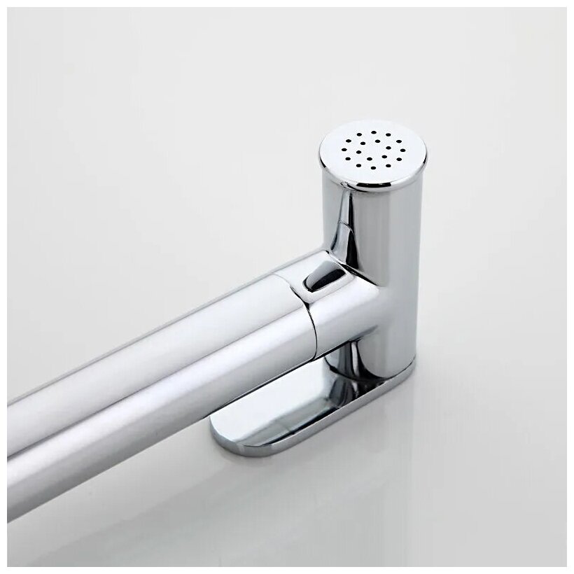 | Плюсы: | Достойный смеситель. При включении шланг не напрягается. |