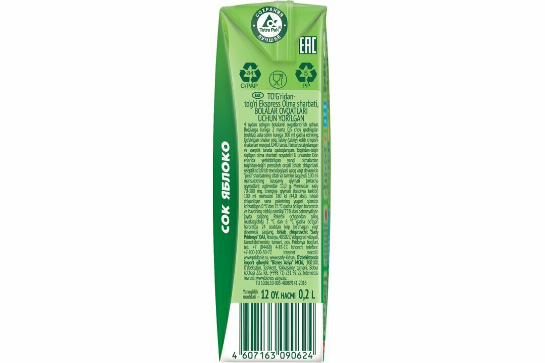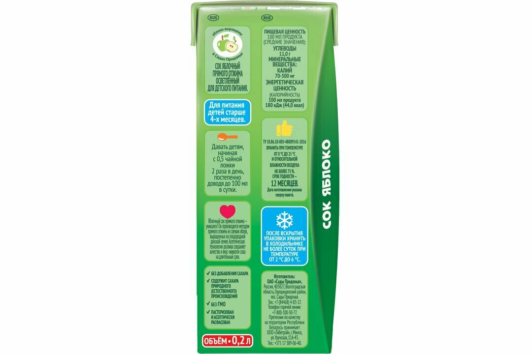 Сок Сады Придонья Зеленое яблоко (Tetra Pak), c 4 месяцев
