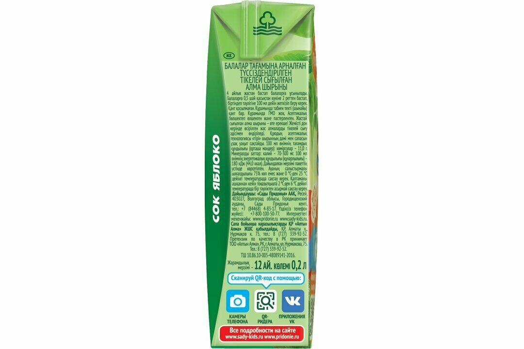 Сок "Сады Придонья" Яблоко прямого отжима осветленный 0,2л пак интересное: