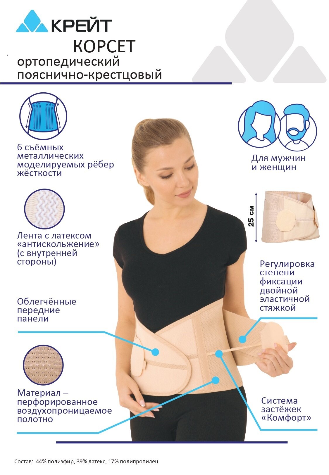 Корсет ортопедический пояснично-крестцовый - "Крейт", №2, бежевый