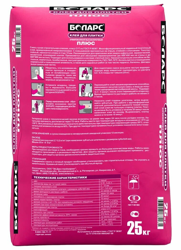 Клей для плитки боларс Плюс 25 кг, класс C1T 00000003740 интересное: