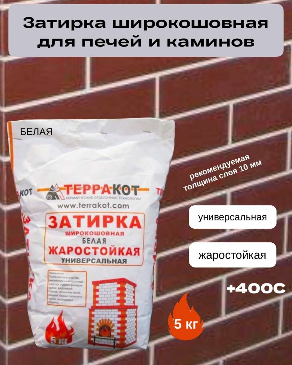 Затирка жаростойкая Терракот для печей и каминов универсальная, белая 5кг