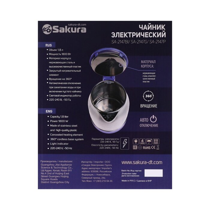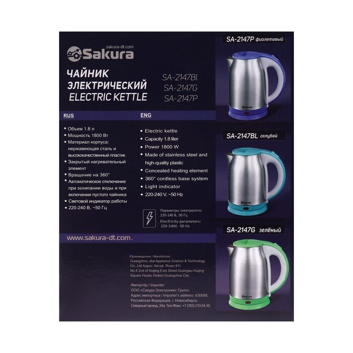 СохранитьЧайник SAKURA SA-2147P фиолетовый интересное: