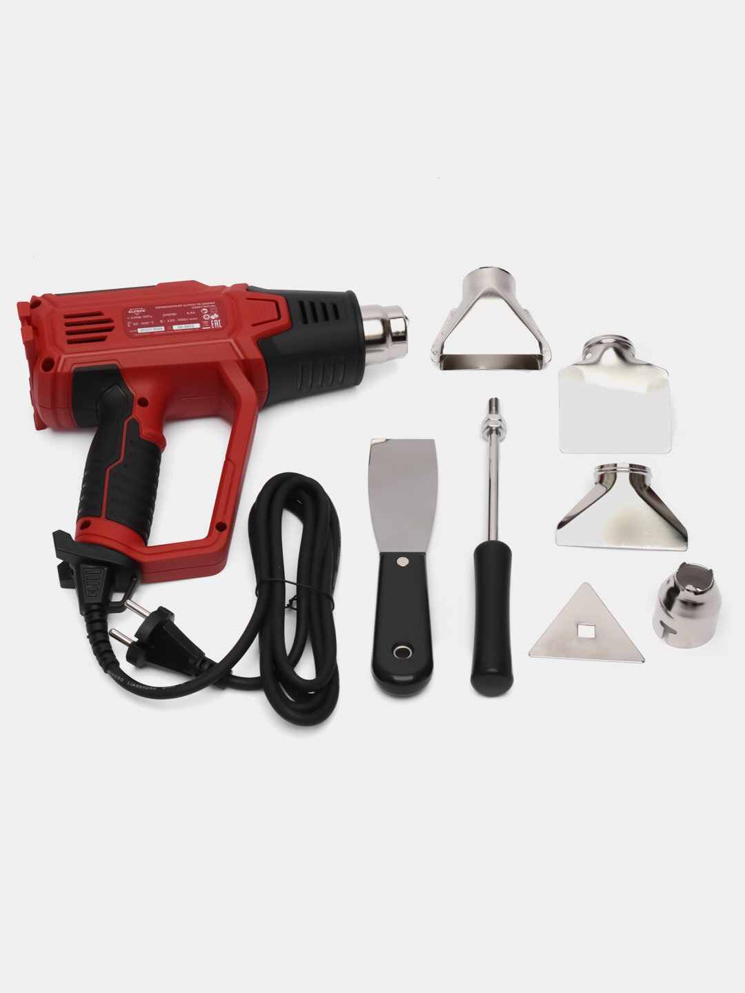 Фен строительный ELITECH ТВ 2000ЖК (2000Вт,6 режимов,4 нас,скребок,шпатель,LCD-диспл,кейс)