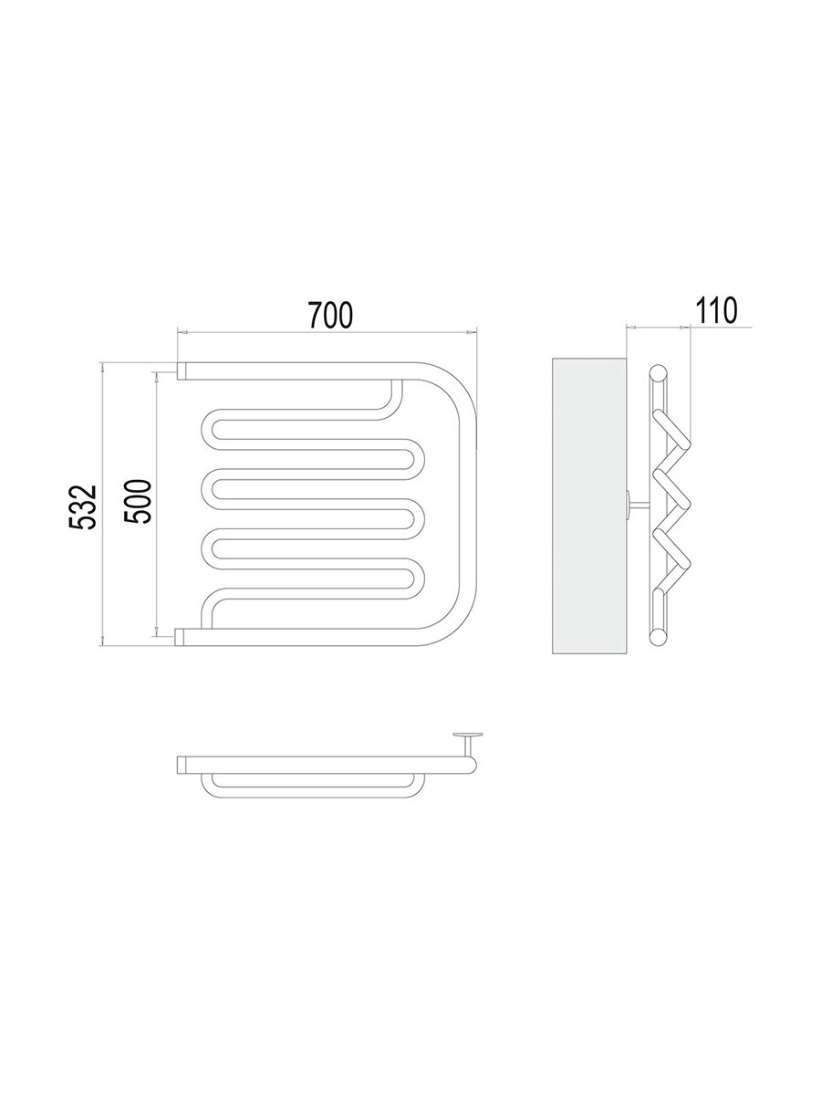 Фокстрот-лиана полотенцесушитель TERMINUS (700 мм / 532 мм / 500 мм)