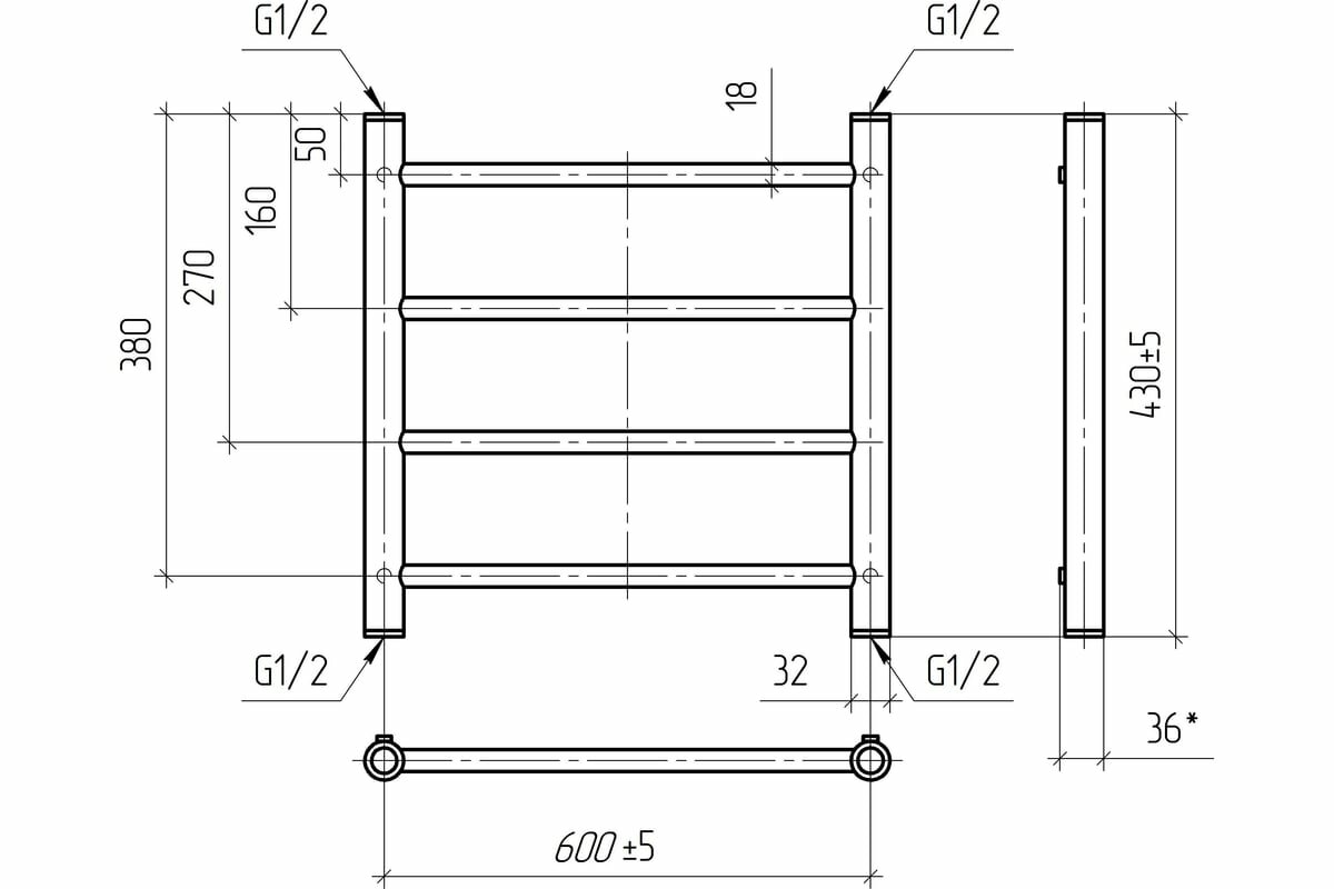 Водяной полотенцесушитель ТЕРА Классика 600x500 ПСБ-08-11