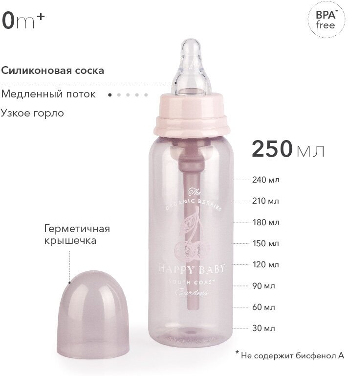 10015, Бутылочка антиколиковая с силиконовой соской 250 мл. Happy Baby, lilac интересное: