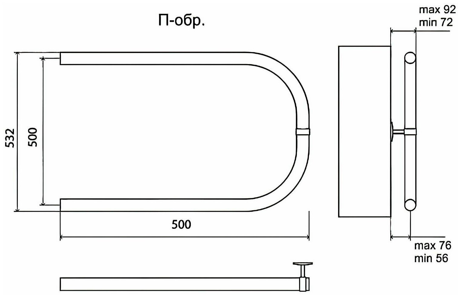 Полотенцесушитель водяной TERMINUS П-образный - 500x500 мм (подключение боковое 500 мм.)