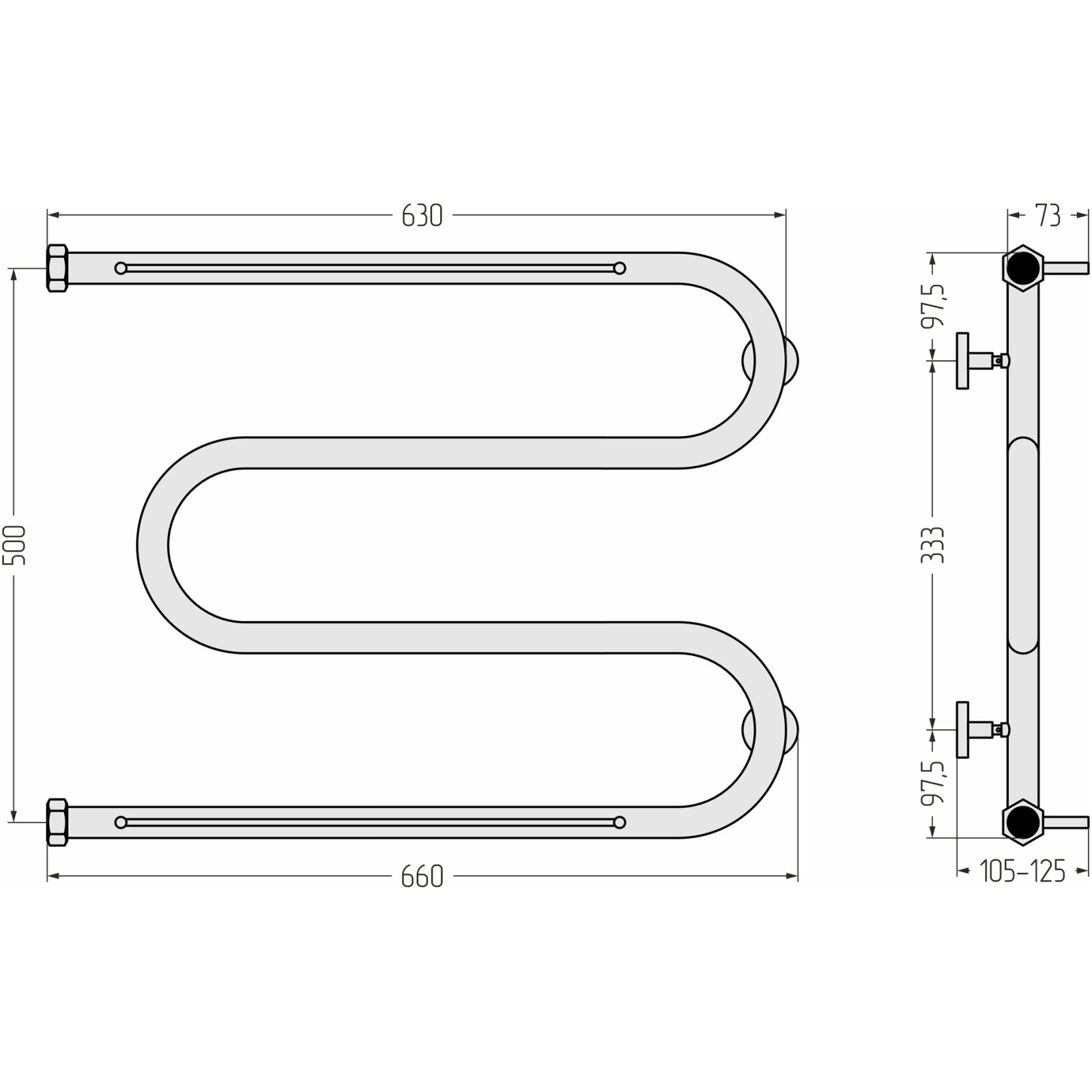 Купить Водяной полотенцесушитель Сунержа М-образный 2П 500x650 без покрытия