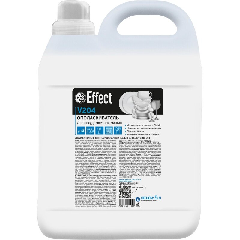 Ополаскиватель для посудомоечных машин EFFECT VITA 204, профессиональный, 5 л