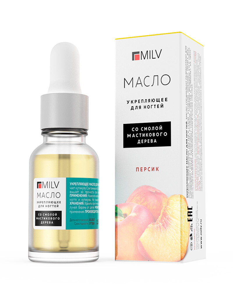 MILV Укрепляющее масло для ногтей со смолой мастикового дерева "Персик". 15 мл интересное: