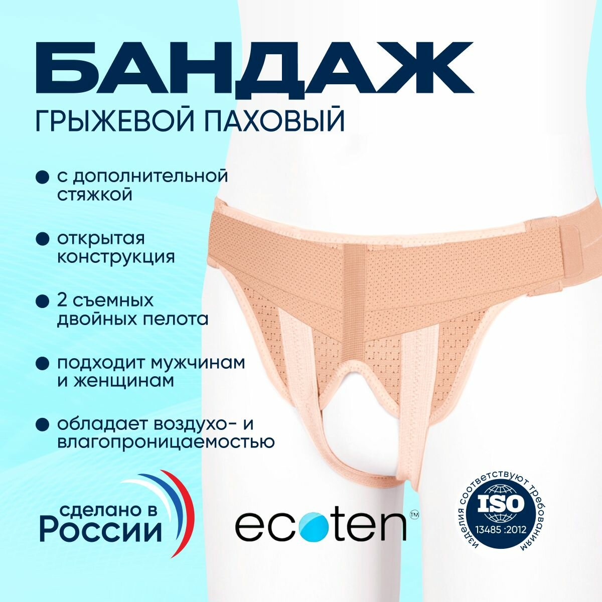 Бандаж грыжевой паховый Экотен (Ecoten) ГПП-443Н Ecoten, Размер M, бежевый