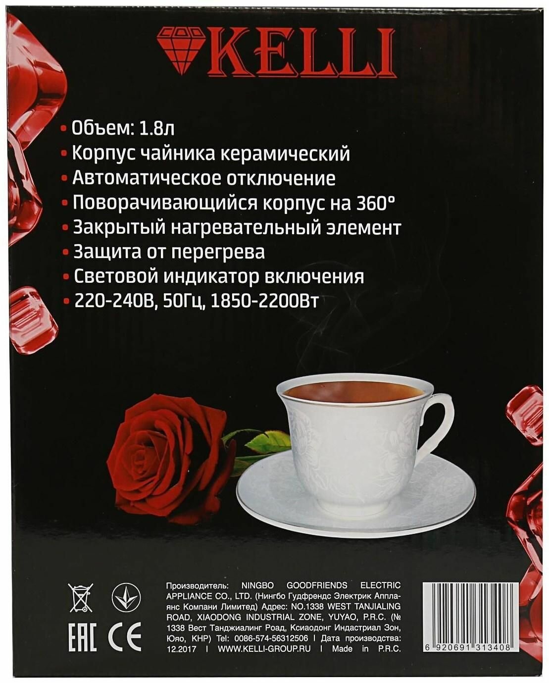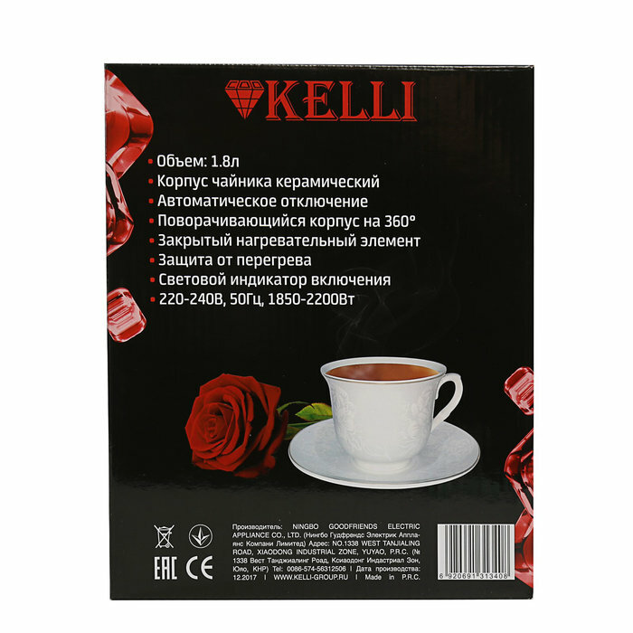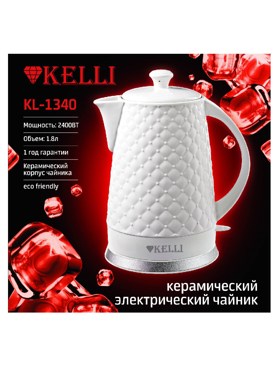 Чайник электрический KELLI KL-1340, керамический, объём 1.8 л